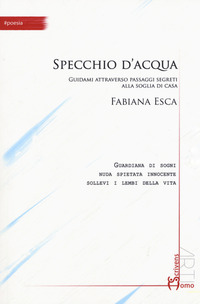 Specchio d’acqua è un cuore di donna che si fa strada tra le pagine e racconta il suo viaggio. E il lettore ritorna alla casa dell’anima attraversando la selva delle emozioni per sentirle, comprenderle e lasciarle andare senza zavorre. Tra i versi della Esca la Poesia si fa conoscenza, si sveste, si intreccia nel suo ritmo e poi si accorda con la danza di un universo in trepido ascolto, non arretra di fronte al dolore, vuole appropriarsi di ogni minuto frammento e connettersi al senso profondo. Innocenza, leggerezza e trasparenza ci accompagnano nel percorso verso l’Essenza, lì dove il mistico e l’anelito al trascendente pervadono la pagina, uniti al tripudio dei sensi in festa e a un’accesa carnalità, con il coraggio di svestirsi infine anche della parola. “Allo specchio sono un riflesso nel sogno sono uno specchio nella veglia sono un sogno. Nel riflesso non sono”. “Un’autobiografia emotiva in versi, fatta di immagini e visioni che vivono in modo autonomo, in cui la scrittura si configura come uno strumento per la espressione e la conoscenza di se stessa.” (dalla postfazione di Fabio Maria Risolo)