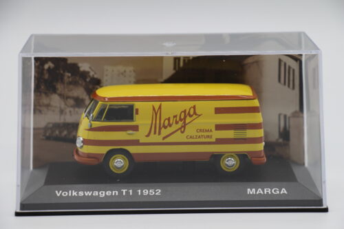 “Marga” è un marchio immaginario utilizzato per scopi di pubblicità nel contesto del modellino. Rappresenta l’idea di stile e qualità che Volkswagen ha sempre incarnato nei suoi veicoli.
