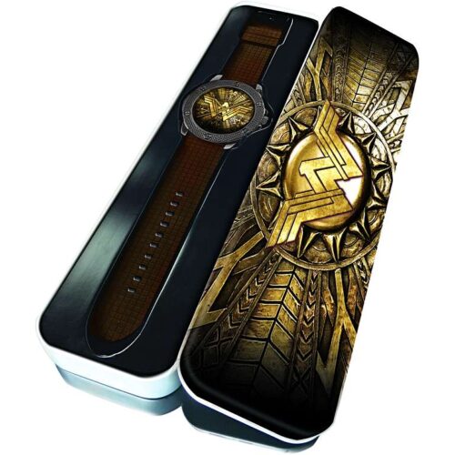 La potenza e la grazia si irradiano da questo orologio e il sorprendente quadrante opulento marrone mostra l’iconico logo del film Wonder Woman al centro che cattura la luce in modo splendido. Dotato di cinturino in silicone marrone scuro per il massimo comfort e movimento al quarzo per una maggiore precisione. Sul retro dell’orologio è scritto il nome del film e il logo.