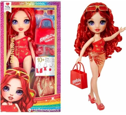 DIVERTITI OVUNQUE: Ruby è pronta per una giornata di divertimento con gli amici vestita con il suo adorabile costume da bagno rosso monospalla, i sandali abbinati, gli occhiali da sole e la borsetta, ideale per giocare in piscina oppure ovunque