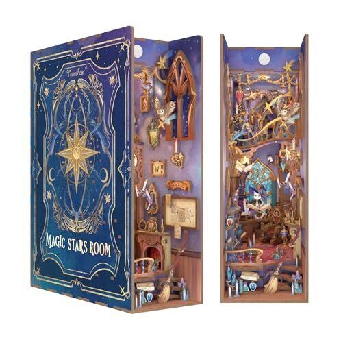 Tonecheer Fai da te Book Nook 3D puzzle in legno per adulti, in miniatura a casa con luce, set fai da te, regali personalizzati per donne e uomini (Casa Magica Stella)