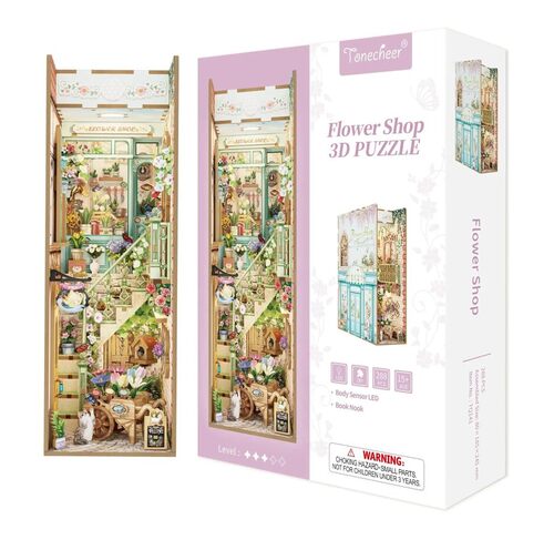 Rendi il mondo del negozio di fiori sulla tua scrivania: colleziona un tocco di primavera per creare un vicolo fiorito – con questo negozio di fiori in miniatura Book Nook questo momento sarà vivo! Passeggia attraverso il vicolo fiorito, apri la finestra sul mondo dei fiori e ascolta le campane del vento che suonano alla fine, che oscillano in armonia con il tempo. Come decorazione da scrivania, accompagna sempre le vostre giornate di lettura e lavoro concentrate con un’atmosfera profumata ai fiori.. Luci con sensore intelligente per l’atmosfera primaverile: il kit di costruzione Book Nook per negozi di fiori è dotato di un sensore a LED: quando un libro viene posizionato accanto al negozio di fiori, la luce si accende automaticamente. Con l’interruttore a LED incluso, il tuo mondo dei fiori brillerà di una luce soffusa, così ogni momento sulla scrivania diventa un’esperienza accogliente e fiorente.. Facile da montare: questo negozio di puzzle in legno 3D è facile da costruire: le istruzioni chiare passo passo consentono di assemblare in 4-6 ore. È la scelta perfetta per gli amanti dei libri, gli appassionati di puzzle o le famiglie: durante la costruzione amplia l’immaginazione spaziale e le capacità di risoluzione dei problemi, rilassandoti allo stesso tempo dopo una giornata intensa.. Regalo caloroso: realizzato in legno ecologico, il kit irradia una consistenza calda e naturale, proprio come un vero negozio di fiori progettato con amore. La delicata luce a LED crea un’atmosfera luminosa e fiorita. Come regalo unisce romanticismo e cordialità, regalalo ad amici o persone care per preservare insieme la mente amorevole e il fascino della primavera.. NOTA: a causa delle restrizioni di spedizione, questo prodotto richiede l’acquisto di tre batterie speciali (tipo AA). Se avete domande durante il montaggio, vi preghiamo di contattarci.