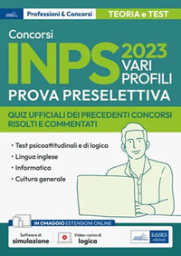 Manuale di teoria e test per la preparazione alla prova preselettiva dei Concorsi INPS 2023. Il testo affronta tutte le materie previste per la preselezione: test attitudinali e di logica; lingua inglese; competenze informatiche; cultura generale .Per ogni argomento sono disponibili quesiti a risposta multipla (online) per verificare le conoscenze acquisite. Una sezione del volume è dedicata alla risoluzione e ai commenti dei quesiti ufficiali dei precedenti concorsi. In omaggio con il libro: doppio software di simulazione (un software basato su un database di oltre 30.000 quesiti e un software basato sui quesiti ufficiali dei precedenti concorsi) per esercitarsi online; video-corso di logica.