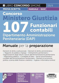 Il manuale “Concorso Ministero Giustizia 107 funzionari contabili. Dipartimento Amministrazione Penitenziaria (DAP)” è indirizzato alla preparazione dell’unica prova scritta prevista dal bando per 107 funzionari al DAP. Il testo tratta, pertanto, le materie oggetto della prova scritta, che consiste in domande a risposta multipla, ed è così strutturato: elementi di diritto costituzionale; elementi di diritto amministrativo; normativa in materia di rapporto di pubblico impiego; ordinamento penitenziario, con particolare riferimento all’organizzazione degli istituti e servizi dell’Amministrazione Penitenziaria; ragioneria pubblica; contabilità di Stato con particolare riferimento ai servizi amministrativo-contabili dell’amministrazione; elementi di economia politica e scienza delle finanze; elementi di statistica; inglese e informatica (online). Grazie al software online, contenente migliaia di quiz su tutte le discipline oggetto della prova, è possibile esercitarsi in infinite simulazioni della prova. Completano il manuale espansioni online normative e di approfondimento.
