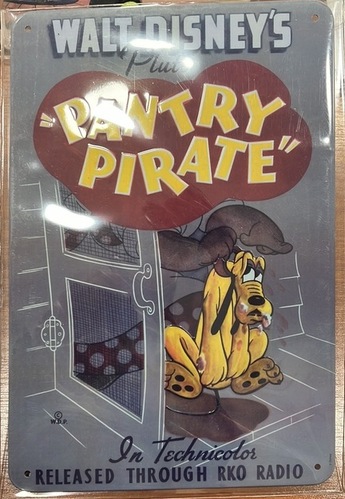 Targa decorativa Disney dedicata a Pluto, con grafica retrò ispirata ai vecchi poster cinematografici.